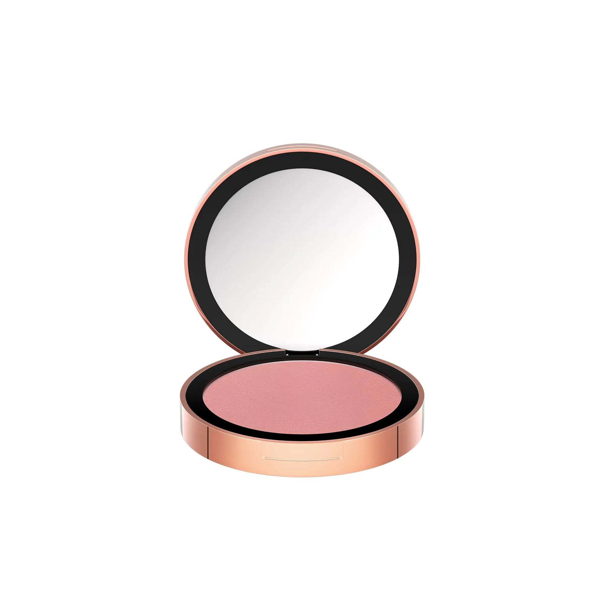 A velvety satin blush in the perfect peach-rose shade. Blends seamlessly into the skin for a soft-focus, radiant finish that lifts and brightens the complexion.