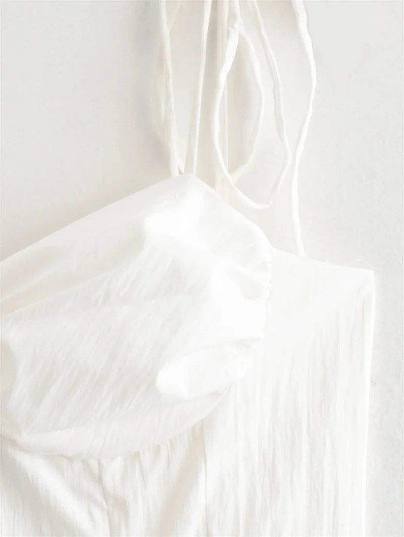 White Slip Dress is an understated statement piece for the discerning woman. This sleek A-line dress features a sweetheart neckline and delicate spaghetti straps that frame the shoulders with refined simplicity. Ruffled accents add subtle texture to the mid-calf silhouette, while the natural waistline creates a flattering, effortless drape. Constructed from quality polyester with a secure zipper closure, this versatile white dress transitions seamlessly from seaside afternoons to evening soirées. Perfect for those who appreciate timeless design without compromise.